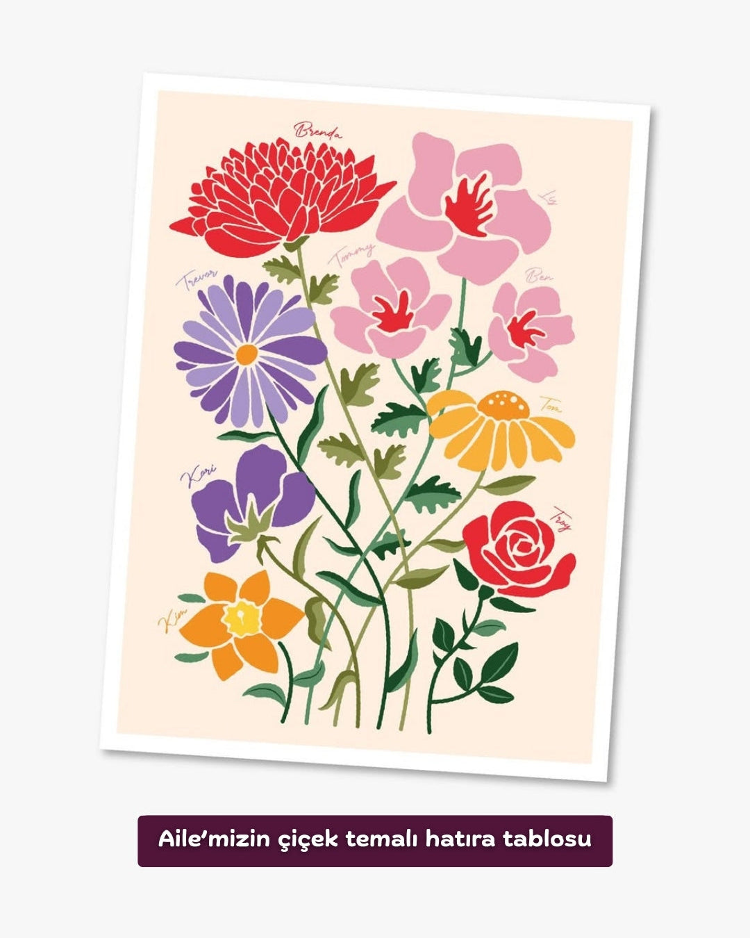 Artık yanımızda olmayan değerli büyüklerimiz ve çok özlediğimiz küçüklerimiz de her zaman duvarda bize eşlik edebilecek... Her kişinin doğum ayına özel kişiliğini yansıtan çiçekler ile aile bireylerimizi anmak artık daha özel olacak.